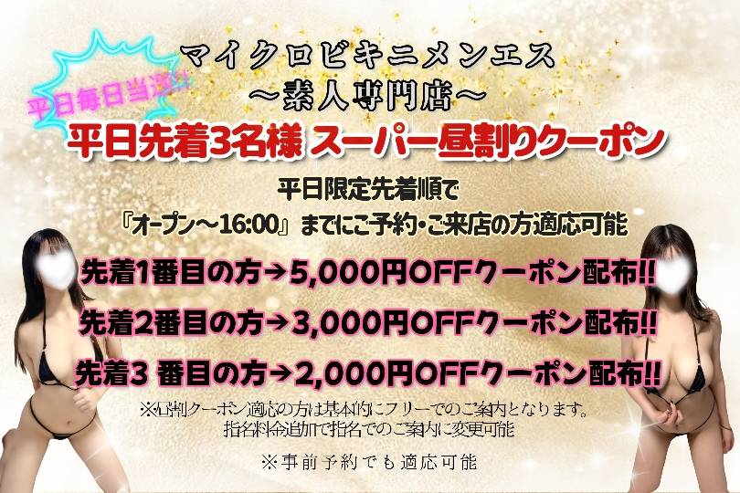 『平日限定‼』先着3名様スーパー昼割りクーポン2025/09/24
